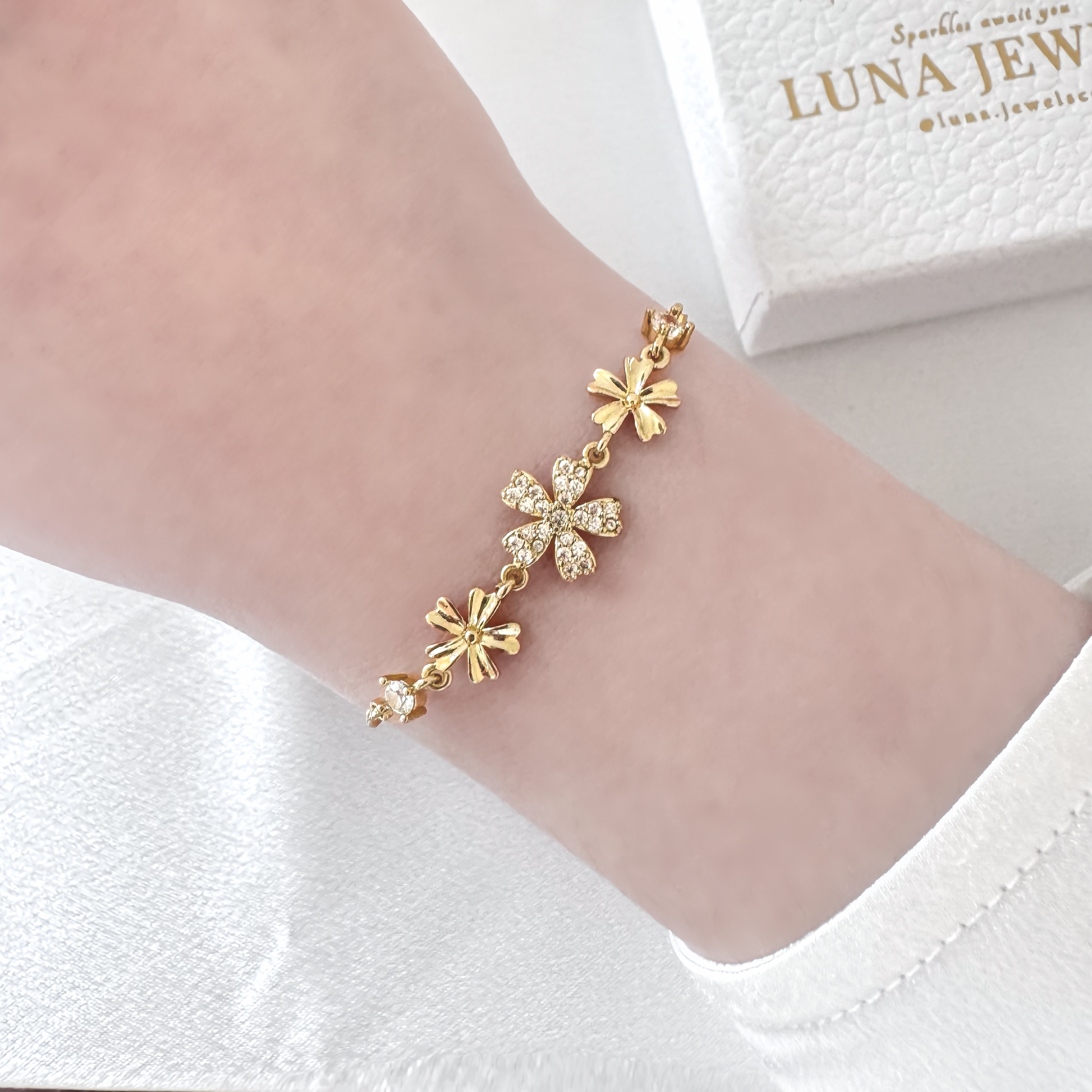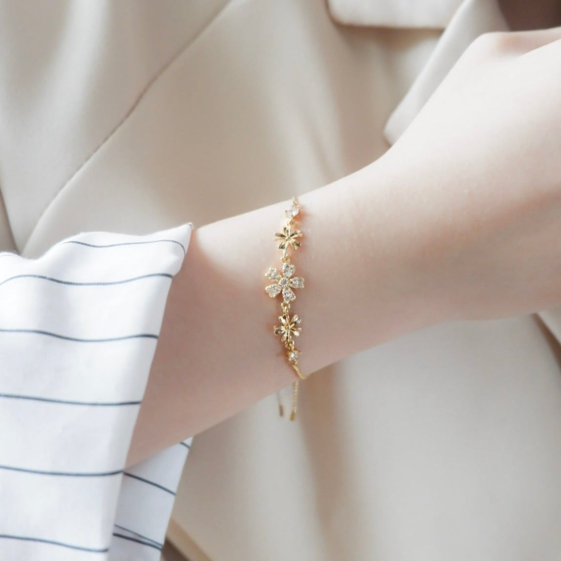 This beautiful Petunia Floral Adjustable Bracelet is crafted with an intricate flower design. With its adjustable wrist diameter, it is perfect for any wrist size. An ideal accessory for any occasion.